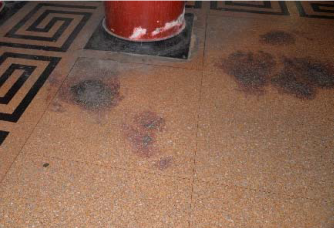 彩绘剥落、地面裂损、油漆褪色、地面污染