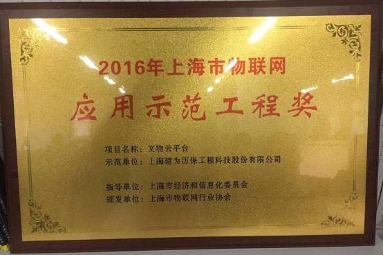 建为历保“文物云平台”获“2016年上海市物联网应用示范工程获奖”殊荣