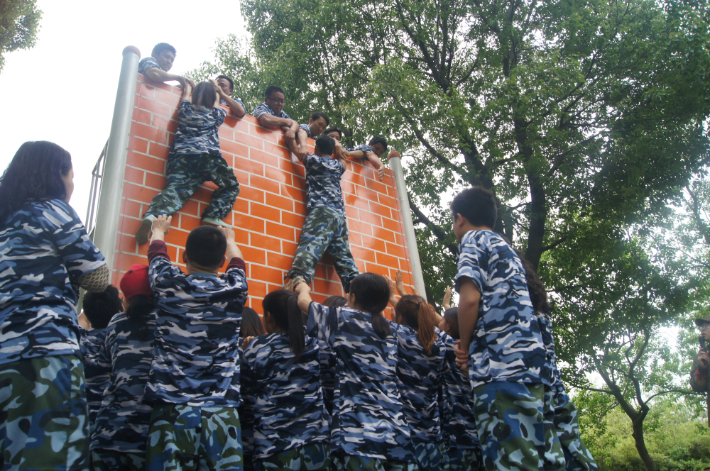 ? ? ? ?第二天上午,由于下雨的原因拓展项目在室内进行,【筹码交易】和【仙人指路】都是培养团队协作性的项目,这些活动体现了各团队在计划、沟通、执行、协作等方面的状态,也让我们体会到领导者的预见性、信息传递的时效性与准确性、员工的执行力、协作配合能力以及信息反馈在工作中的重要性。下午的【胜利大逃亡】是此次拓展训练的一个完美收官,整个团队被困于一道4.5米高的墙壁下,不能借助任何工具,不能发出一点声音、只能通过人的力量与智慧,爬过墙实现集体逃生。这个项目真正实现了团队大融合,平时交往甚少的同事此时变成生死相交的挚友。特别是在最后一个队友爬上墙时,场面惊险万分,在场所有人的心都悬着,当所有人都顺利爬上墙时,很多人都被团队所表现的空前凝聚力感动到落泪。