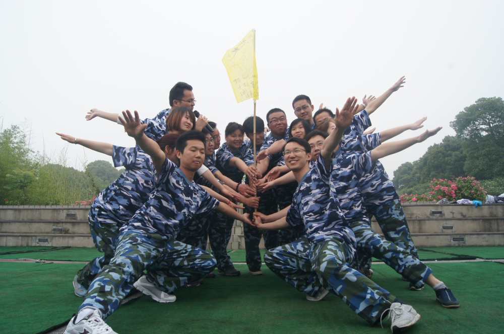 ? ? ? ?9点30分,大部队顺利抵达月季公园拓展训练基地,在集合、点到、更换拓展服后,两天的拓展训练正式拉开了帷幕。拓展的第一个项目是【开营破冰】,在这个项目中,整个大部队被分成了三个小队,选出了各自的队长,确定了队名和口号,接下来的小游戏用轻松愉悦的方式,打破人与人之间的隔阂,建立相互信任的基础,这个项目也为之后两天的拓展进行了心态调整并打下情感基础。